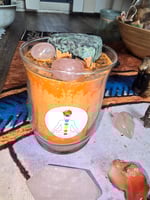 This candle will aid one into healing from heartbreak,despair and grief of any kind. Infused with Rose petals,Eucalyptus,Calendula,Lavender and more to uplift ones spirit during any time of tragedy & discomfort. Topped with crystals Ruby Zoisite, Aura Rose Quartz, and Strawberry Quartz to amplify intentions as well as allowing one to receive the metaphysical healing properties of these crystals. Scented Vanilla and accompanied by Rose,Bergamot, and Peppermint essential oils to further more aid one into Healing,Purification, and Releasing. This Candle can be used when grieving the loss of a loved one, or the ending of a significant relationship innerstanding the damage is beyond repair. All CANDLES are made to order/PREORDER ONLYY. Please allow 2-3 weeks for the candle to be conjured and shipped out to you. DONOT LEAVE CANDLE UNATTENDED IN CROWDED AREAS